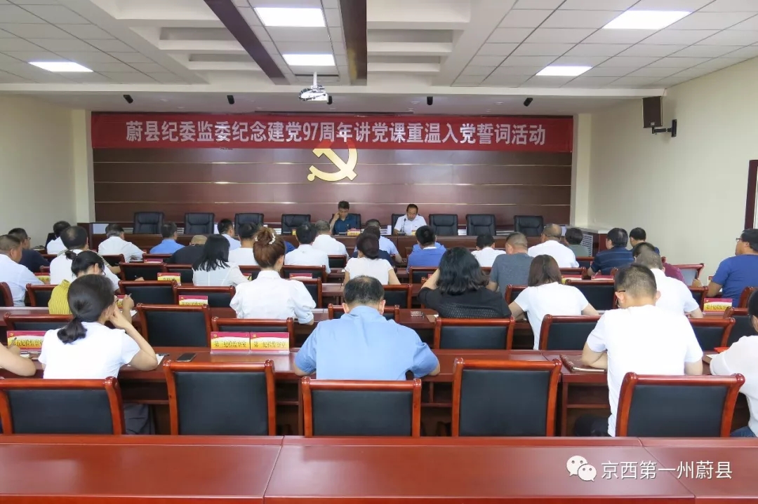 为纪念中国共产党成立97周年,6月28日,蔚县纪委监委组织开展了讲主题党课,重温入党誓词党日活动。县委常委、县纪委书记、县监委主任杨毅平同志以“不忘初心、牢记使命,忠诚履行纪检监察工作职能”为主题,向全体纪检干部讲了一堂生动的党课。杨毅平同志首先回顾了中国共产党的奋斗历程,重温了党的历史使命,他要求全体纪检干部要不忘初心,担当尽职,始终拥有忠诚、为民、斗争、纯洁之心;要履行好新时代的新使命,做到有底气、有大气、有勇气、有正气;要进一步突出政治定力,健全监督体系、推进正风反腐、强化自身建设,在实践中检验初心、诠释使命,以深化改革为契机,不断强化监督基础上的执纪问责和调查处置,推动全面从严治党向纵深发展。